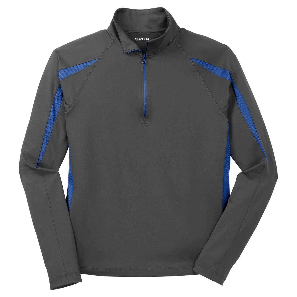 When the weather gets tough, so must you. That’s the idea behind this Sport-Tek Men’s Charcoal Grey/ True Royal Sport-Wick Stretch 1/2-Zip Colorblock Pullover. Add your own custom embroidery to make this a piece of corporate apparel that anyone can enjoy. Layering is ideally suited to serve as your canvas, and this is an item that will work for you in the elements, not against.