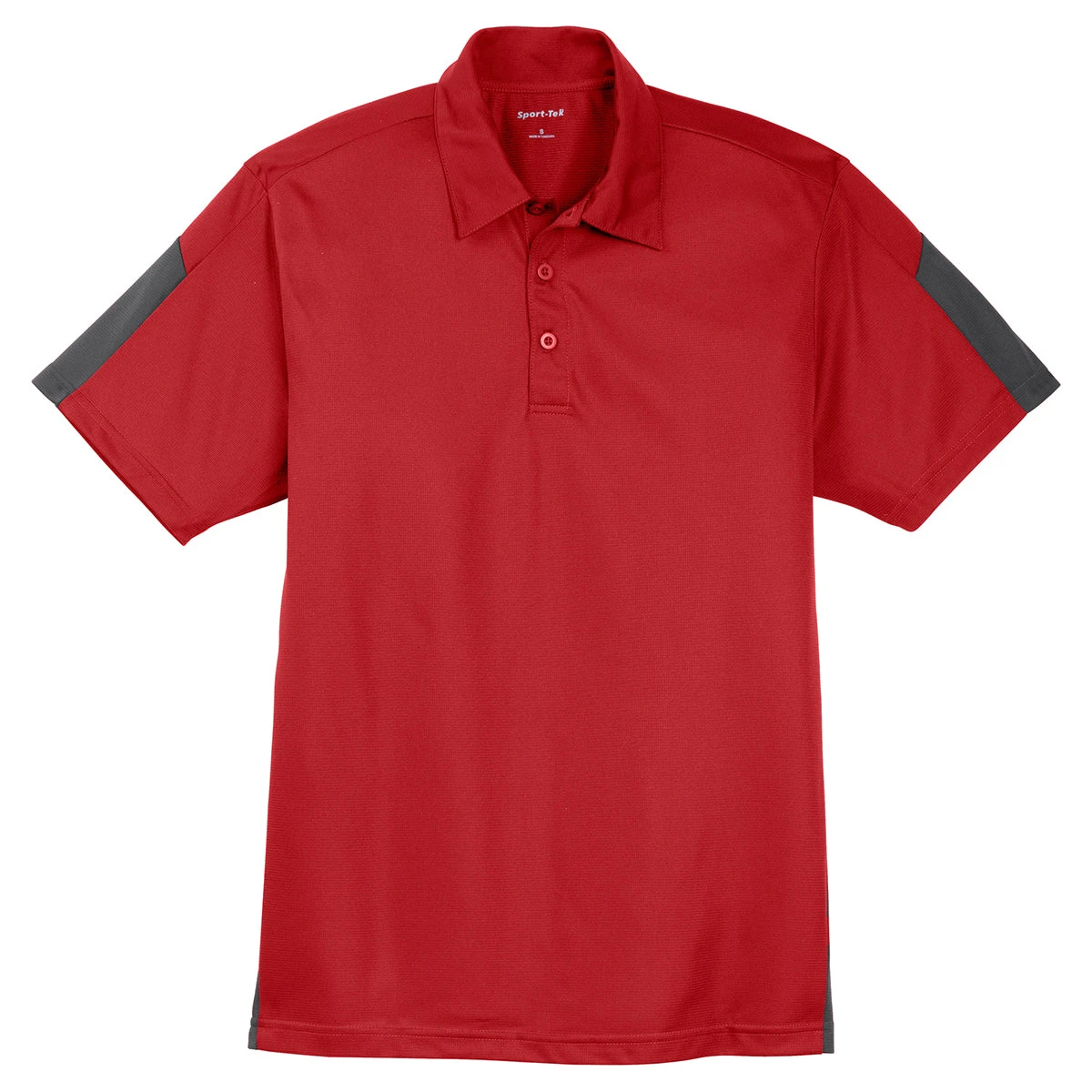 Corresponding Women’s Style: Sport-Tek Women’s True Red/Grey PosiCharge Active Textured Colorblock Polo
