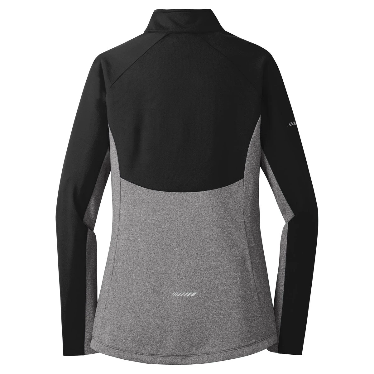 The logoed Sport-Tek Women’s Black/Charcoal Grey Heather Sport-Wick Stretch Contrast 1/2-Zip Pullover features a gently contoured silhouette that makes the layering piece both comfortable and stylish. With all eyes upon you, display the corporate logo you attached on the large imprint area to attract more interest in your products and services. Moisture wicking technology keeps you comfortable all day long, and ready for anything. Reflective details on the right sleeve and lower back are a necessary addition for late night workouts. This layering piece is one that both creates unity for your team, and outfits them with a 1/4 zip they will want to wear more than just at the office.