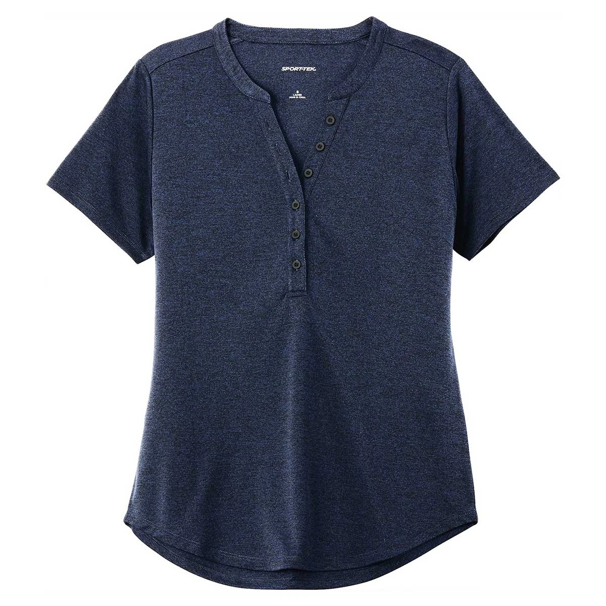 Rock an updated classic look with an embroidered Sport-Tek Women’s Dark Royal Heather Endeavor Henley. The lightweight 100% polyester Henley has a subtle heather texture with moisture wicking technology to allow you to work and play hard. Perform your best in the V-neck with a 6-button placket and scalloped hem for a bit of extra coverage. Add a corporate embroidery to wear these to corporate events or to use as company uniforms for daily wear. The slightly fitted look is professional, yet fun and can be easily layered with a jacket or vest as needed. Place your order today to update your personal wardrobe or offer these as gifts.