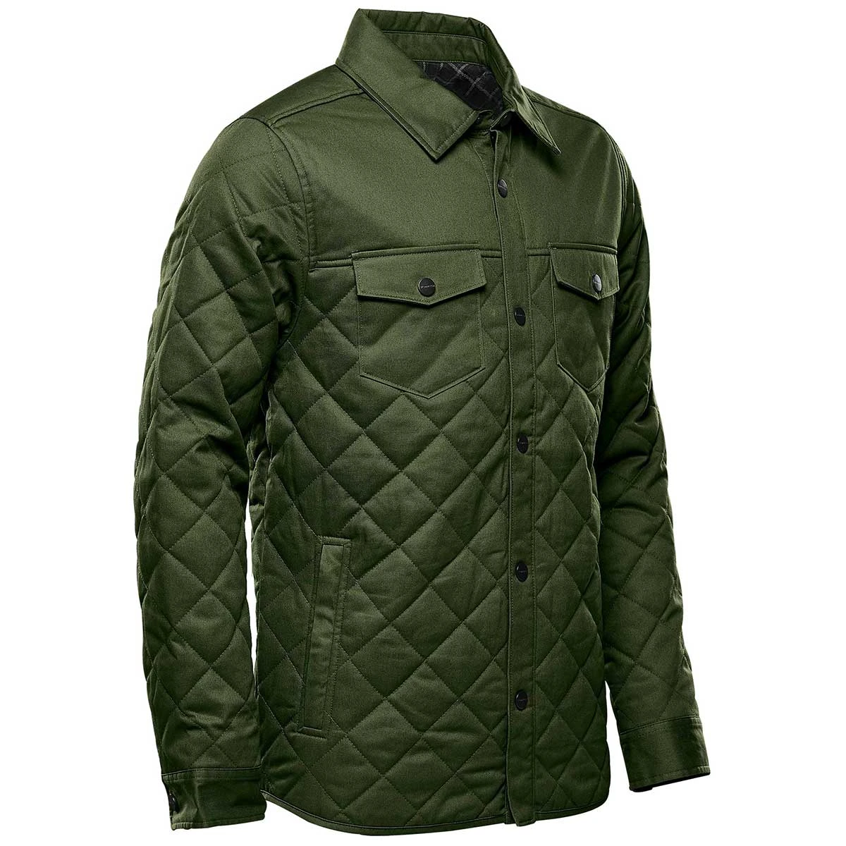 Enjoy a custom embroidered Stormtech Men’s Earth Green Bushwick Quilted Jacket when the temperature takes a downward turn. This sleek jacket will display your company logo boldly whether use as workwear or even as a corporate gift. The quilted poly-fill jacket has a snap front for closure and zippered hand warmer pockets to help keep you warm. The attached hood protects you from the wind as you go about your work ay or enjoy some outdoor fun with family and friends.
