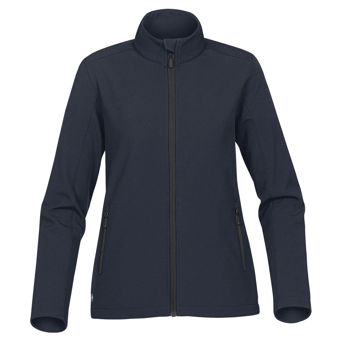 With a modern fit and streamlined look, the Stormtech Women’s Navy/Carbon Orbiter Softshell jacket not only offers lightweight protection from the elements, but does so with style. It has ample room for your company logo and high contrast zippers that add colorful detail. Wearers will appreciate the chin saver and fleece backing that offer comfort and warmth. Several zippered brushed tricot lined pockets provide places to stash everyday items like a phone and sunglasses without fear of scratches. The jacket makes a thoughtful corporate gift to recognize valuable employees and clients.