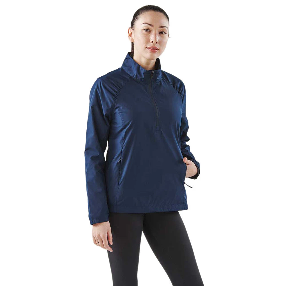 Stormtech Women’s Navy Pacifica 1/4 Zip Anorak with custom logo is a lightweight, easily portable vented shell that is ideal for passing showers. A wonderful option for those who enjoy spending time in the great outdoors while hiking or camping, but also great with a custom logo to show support for a team or attend other outdoor events. When finished wearing the Anorak, stow it in its own pocket and go about your day. Try out a company logo to offer these as fun and functional employee gifts that everyone can appreciate. Place an order today to have these available as soon as possible.