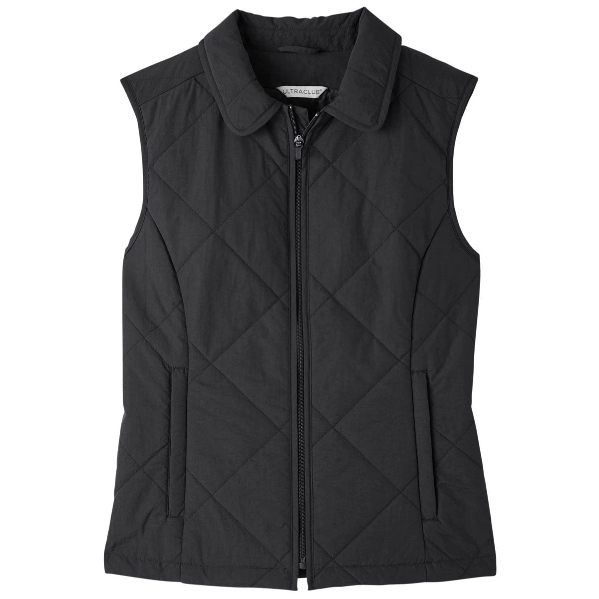 Add your embroidery to the UltraClub Women’s Black Dawson Quilted Hacking Vest for a fun and functional look that can go from work to home and everywhere in between. Made of a nylon taslon with water resistant finish and taffeta lining, this vest adds to uniforms with a company logo or can be given as employee gifts for the holidays. Servers, grooms, and many others will look professional in these center zip vests with peter pan collar, a feminine fit, and lower front pockets for easy small item access. Available in a range of sizes, these vests are ready for the great outdoors or to be a fashion accessory.