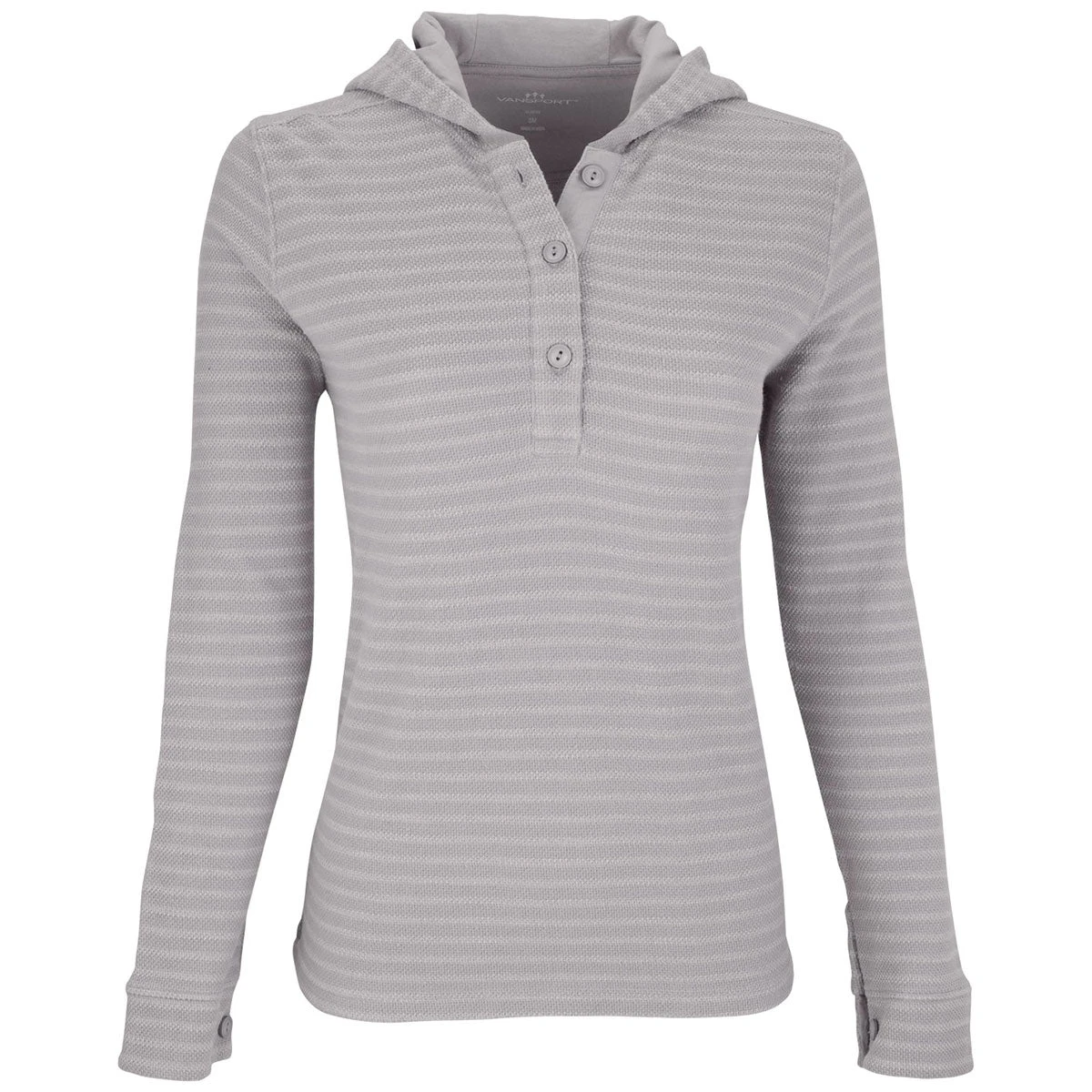 Add your choice of screen print to the Vantage Women’s Grey/White Baja Hoodie in the surf inspired design that anyone can appreciate. The dual colored striped shirt is perfect when you are feeling adventurous or even when you just want to relax and unwind. Add a custom logo to add extra flair to this already wonderful shirt. Try a company logo to give these as employee gifts to enjoy on days off or offer to family and friends.