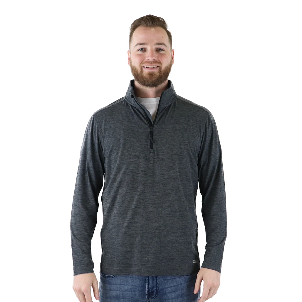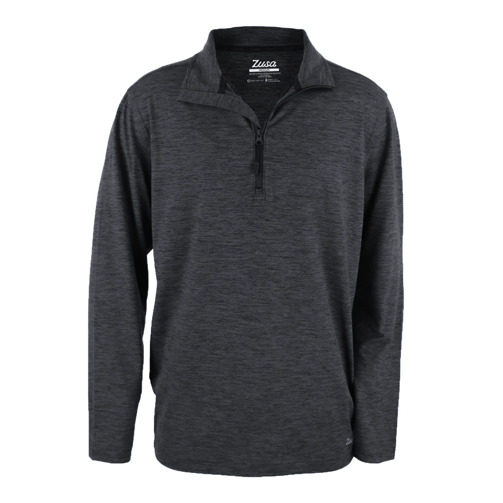 The custom Zusa Brisk Quarter Zip is a versatile layering piece that was made for a wide range of activities. Whether you’re looking for a comfortable addition to your casual work wardrobe, or you need a new layer that will accompany you on your next fitness routine, the custom charcoal heather Brisk Quarter Zip will do the job. With your custom logo on the chest, sleeve or back, you will rep your brand effortlessly in and out of the office. This sustainable sweater style is moisture wicking and made of a polyester-spandex blend to give you breathable comfort all day long. Download this PDF to easily share product information with your team!